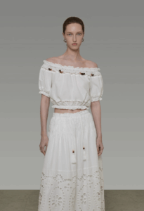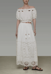 A hollowed-out one-shoulder short-sleeved shirt skirt set