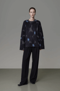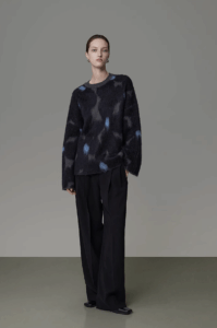 A long wool yarn sweater with a sense of design