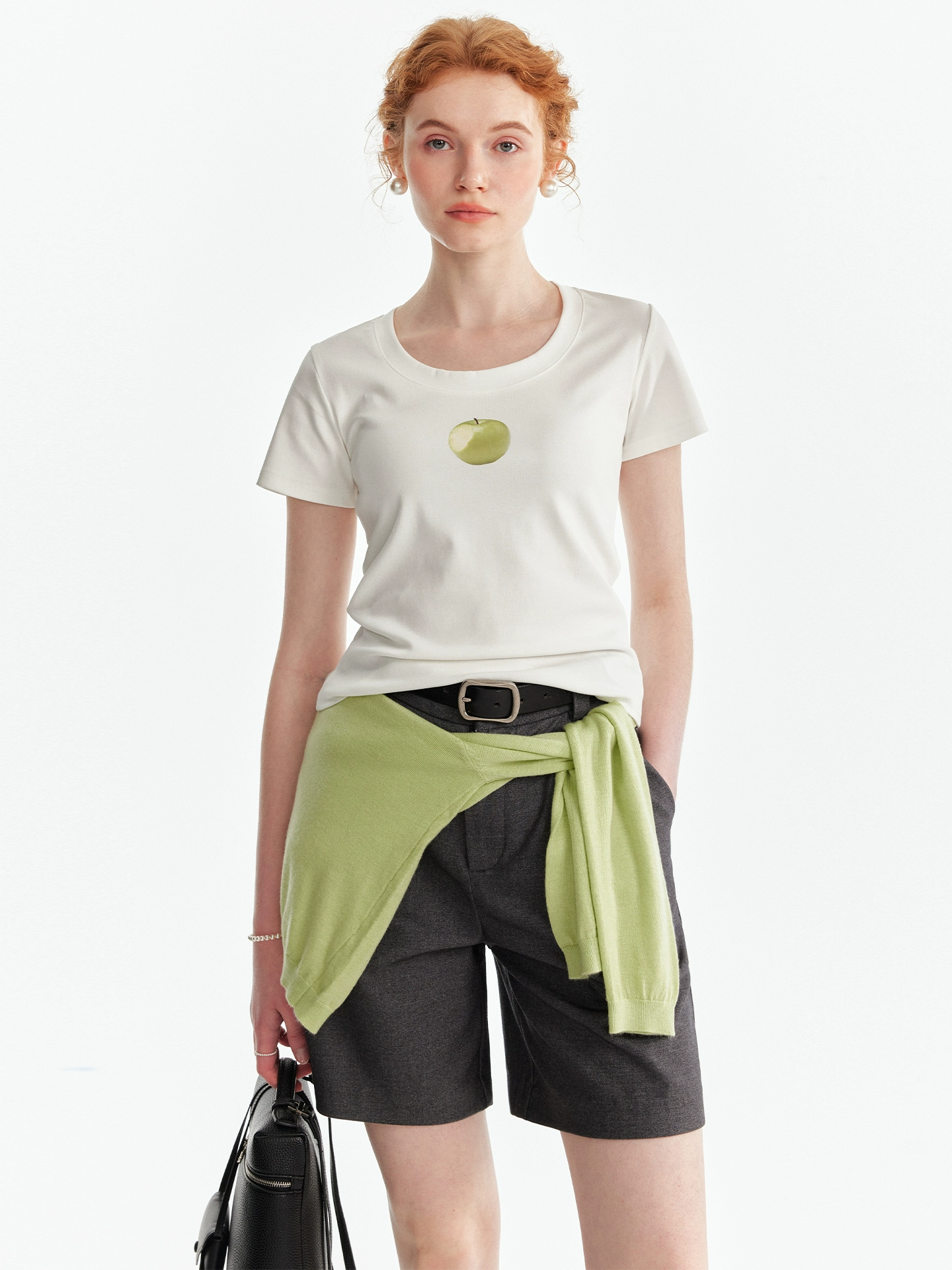 Ladies with fruit-printed round-neck short-sleeved shirts