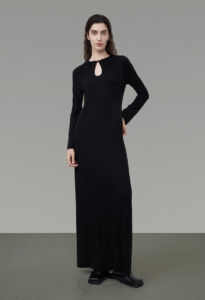 Long-sleeved dress with a teardrop-shaped cutout collar